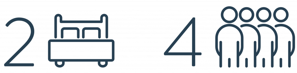 Boasting spacious living space, the apartment features two bedrooms with double beds, providing ample room for up to four guests.